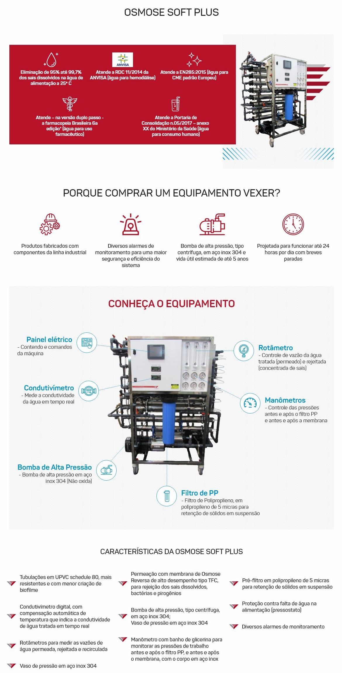 O equipamento é ideal para tratamento de água de clinicas de hemodiálise, indústrias e hospitais.