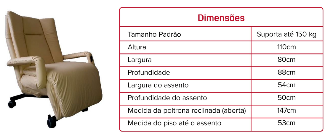 • Reclina em diversas posições, de forma suave, encosto e região dos pés reclinam simultaneamente;